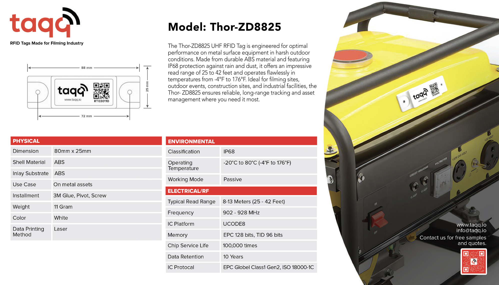 Taqq RFID tags are designed specifically for the equipment rental industry, especially for filming equipment and equipment for any other entertainment business. We provide tag solutions that fit glove and hand for clients working in the filming, theater, audio or event equipment niches. Whether you’re looking to maintain inventory or expedite rental orders, Taqq RFID has the tag solution you’ve been looking for.
